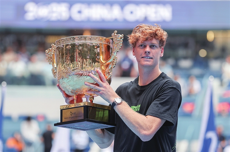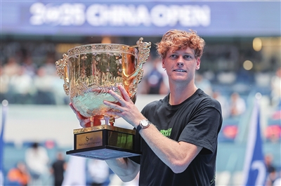 ○新华社北京10月1日电2025年中国网球公开赛1日在钻石球场决出男单冠军,头号种子辛纳以两个6比2击败19岁的美国小将勒纳·钱,成功登顶。