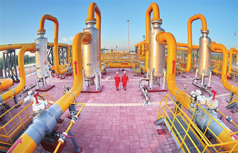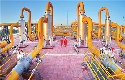 ■10月1日,在河北省秦皇岛市海港区的国家管网北方管道秦皇岛作业区,技术人员在对“北气南下”能源大通道线路设备进行日常巡检。