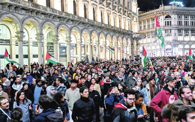 以色列拦截船队的消息传开后,意大利1日晚爆发大规模抗议活动,罗马、米兰、那不勒斯、都灵、热那亚等地数万人走上街头,在多地火车站静坐集会、拦堵铁路。据意大利媒体报道,大约40名参加“全球坚韧船队”的意大利公民遭以方扣押。意大利工会组织宣布3日举行大罢工,抗议意政府对以政策,声援巴勒斯坦。