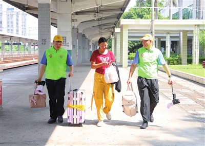 一名带着孩子的旅客在志愿者帮助下顺利坐上火车:“我错过了进站时间,多亏志愿者帮我改签了最早的班次,太贴心了。有他们在,感觉出门心里特别踏实。”另一名从外地来河源旅游的游客说:“志愿者不仅指路准确,态度还特别亲切,给我这个外地游客留下了深刻印象。”