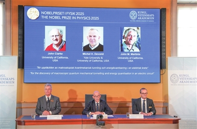 瑞典皇家科学院7日宣布,3名科学家因在量子力学领域的贡献获2025年诺贝尔物理学奖。新华社发