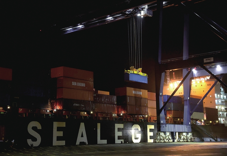 ■10月13日,中欧北极快航航线首艘货船在英国费利克斯托港停泊卸载集装箱。