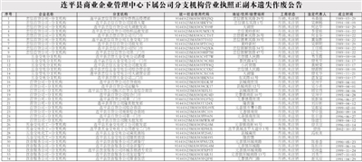 连平县商业企业管理中心下属公司分支机构营业执照正副本遗失作废公告