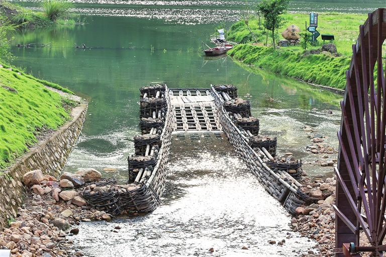 此外,田源镇将肖屋鱼梁作为乡村振兴和旅游发展的一大亮点,在肖屋村入口处,用木、石、藤就地取材建造的肖屋鱼梁置于江面,让游客近距离了解鱼梁的整体结构与工作原理,切身感受这种既不破坏生态又能可持续捕鱼的古老技艺。
