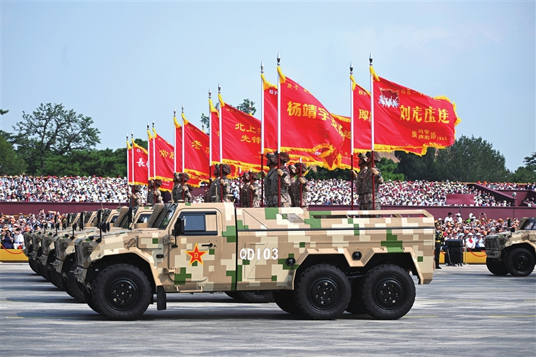 2025年9月3日,天安门广场,战旗猎猎,铁流滚滚。