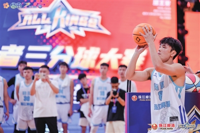 ○本报讯记者曾競近日,2025广东省男子篮球联赛球王赛在东莞市长安体育公园体育馆举行。在三分球单项赛中,我市球员曾煜成拿下25分,连续3年夺得球王赛三分球大赛冠军(上图,网图)。