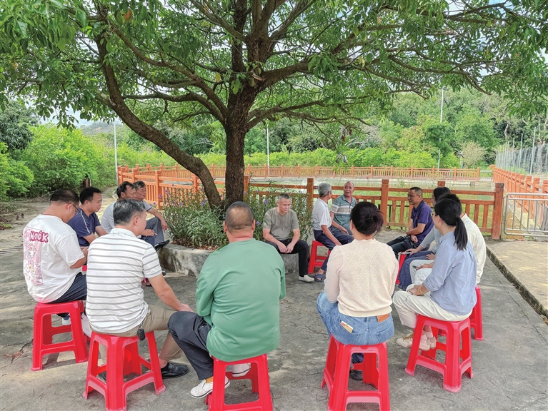 ■源城区埔前镇高围村打造了接地气、有人情味的“议事点”,推动形成“有事坐在树下说、有理摆在桌面讲”的村民议事习惯。通讯员 古思华 摄