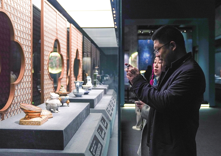 ■10月30日,游客在西藏博物馆“祥开万象——故宫与西藏文物联展”上参观。