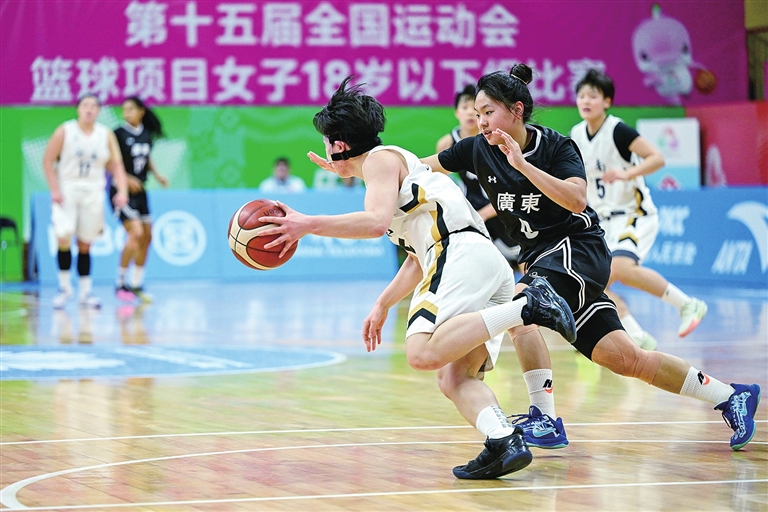 当日,在广东省中山市举行的第十五届全国运动会篮球女子18岁以下组铜牌赛中,广东队85比69战胜河南队,获得季军。新华社发