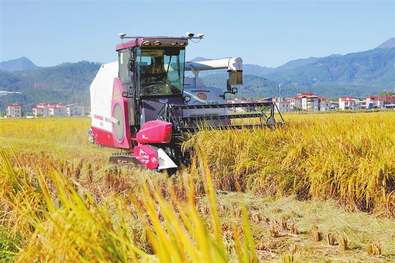 智能收获机收稻、整地、播肥一气呵成。 本报记者 杨坚 摄