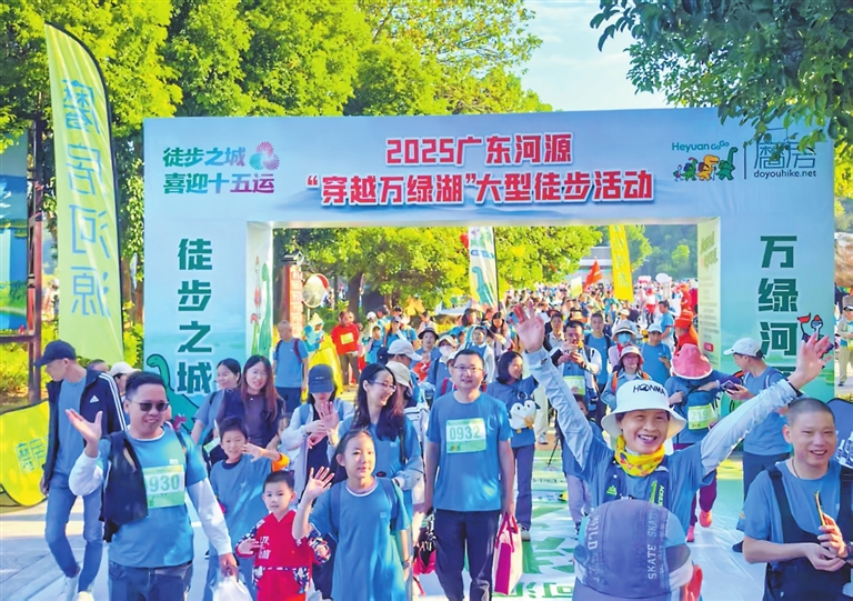 ○本报讯记者雷宇烁昨日,“徒步之城·喜迎十五运”2025广东河源“穿越万绿湖”大型徒步活动举行,来自粤港澳大湾区及周边省、市的近万名驴友,用脚步丈量河源秋日的诗意山水。