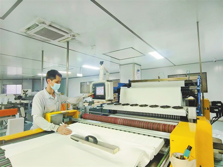 在迪特环境科技公司生产车间,自动化生产设备不停地工作着,工人们将刚加工成型的空气净化设备进行组装;在产品展示厅,可以看到该公司生产的不同品类产品。“空气过滤器就有很多种类,按照低、中、高来区分其耐热程度,可适用于不同车间的不同场景。”迪特环境科技公司工作人员介绍,“目前公司生产的很多都是标准件,非标准件通常根据客户需求进行定制。”
