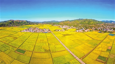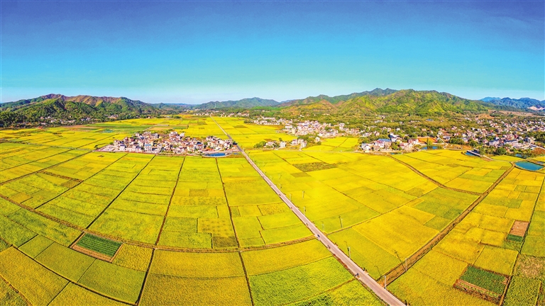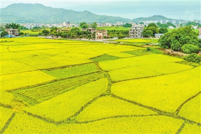 ■金秋时节,走进东源县船塘镇老围村,金色稻田为秋日铺开丰收画卷。