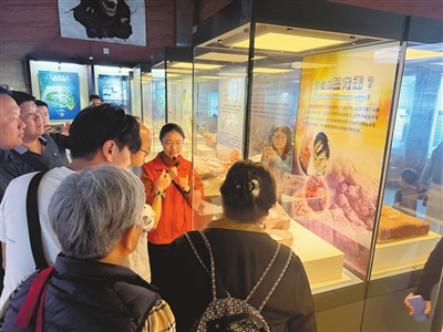 研学营一行来到河源恐龙博物馆,近距离观赏世界罕见的恐龙蛋化石群。 本报记者 周慧荷 摄