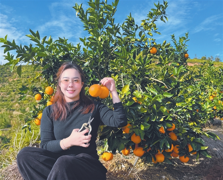 ○本报讯记者叶春雨特约记者骆鹏翔通讯员梁锦明近日,彭寨镇岭西村高山脐橙种植专业合作社600亩脐橙丰收开园,金黄饱满的果实挂满枝头,吸引许多游客前来采摘品尝。