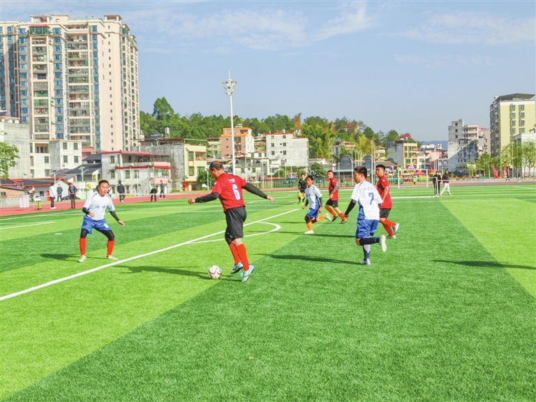 ■近日,连平县“工会杯”职工足球比赛在县体育公园开赛。这是该县第一次举办此类足球比赛。李立师 摄