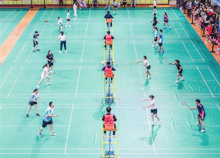 ○本报讯记者朱惠思通讯员朱浩龙9日至10日,2025年源城区中小学生及教职工羽毛球联赛在市体育馆举行,来自36所中小学的715名师生羽动赛场展风采(如图,朱惠思朱浩龙摄)。 本次联赛为期2天,学生项目设置了单项赛的小学一二年级组、三四年级组、五六年级组、初中组、高中组和混合团体赛的小学组、初中组、高中组;教职工项目设置了U45混双赛和混合团体赛,师生各组别划分了多个竞赛单元进行。 赛场上,选手们身姿矫健、攻防有度,时而大力扣杀,时而巧妙防守,不时引来观众喝彩和加油鼓劲。