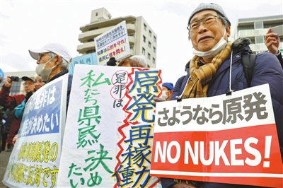 ■12月22日,民众在日本新潟县抗议重启柏崎刈羽核电站。 新华社 发