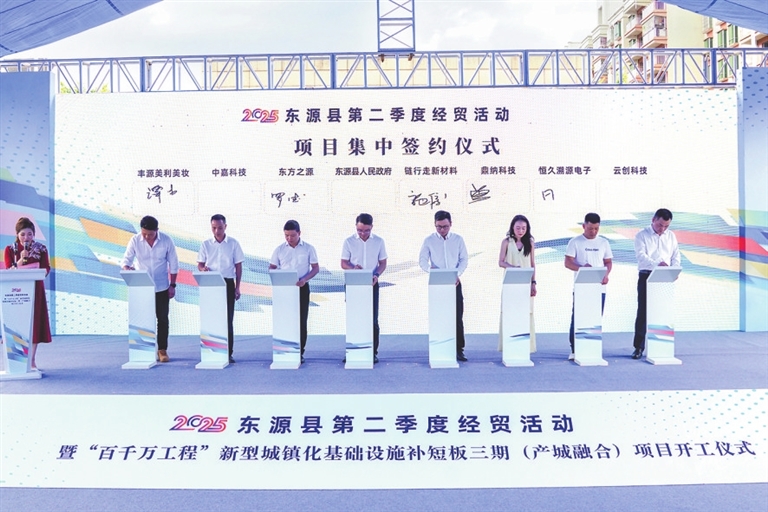 项目建设攻坚突破,产业根基不断夯实。东源县坚持“项目为王”,深入开展工业项目“百日攻坚”与“百千万工程”项目建设大比拼,河源东源产业园区三期(启动区)工程等重点项目加速推进。在企业培育方面,形成先进材料、高端装备制造、电子信息三大主导产业,培育水饮料和食品加工两大特色产业,构建“3+2+N”产业集群升级版。铭镭激光跻身全省战略性新兴产业集群重点支持企业,鑫达科技获评省级制造业单项冠军,信大科技实现国家级专精特新“小巨人”企业“零的突破”。晟源永磁获省级2000万元研发资金支持,并撬动5000万元社会资本,创下科研项目投资规模历史新高,还荣获2024年度广东省科技进步奖二等奖。