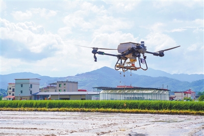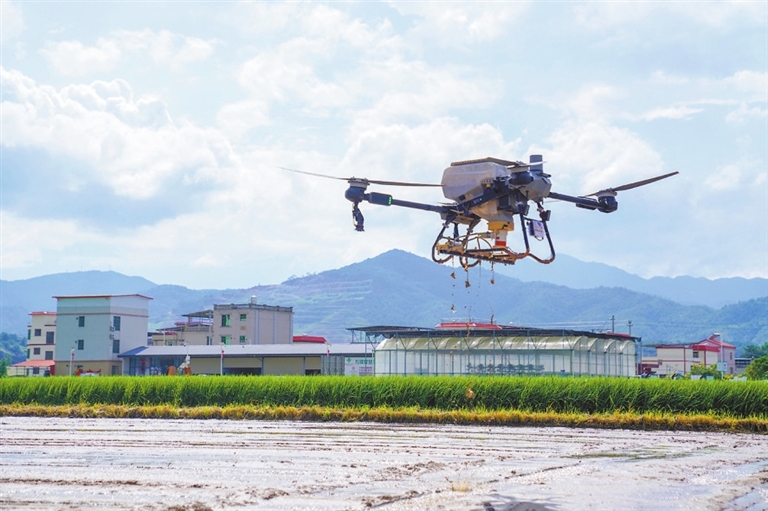 新设备领航,无人农场效率倍增。东源县引进罗锡文院士团队打造万绿智慧无人农场,成为全省规模最大、技术最先进的水稻智慧基地,实现耕、种、管、收全流程无人化,综合机械化水平达72.9%。“天空地”一体化装备矩阵大显身手:单台植保无人机日作业500亩,是人工效率的100倍;2000亩稻田撒肥仅需4天,成为“低空经济+农业”的全国典范。