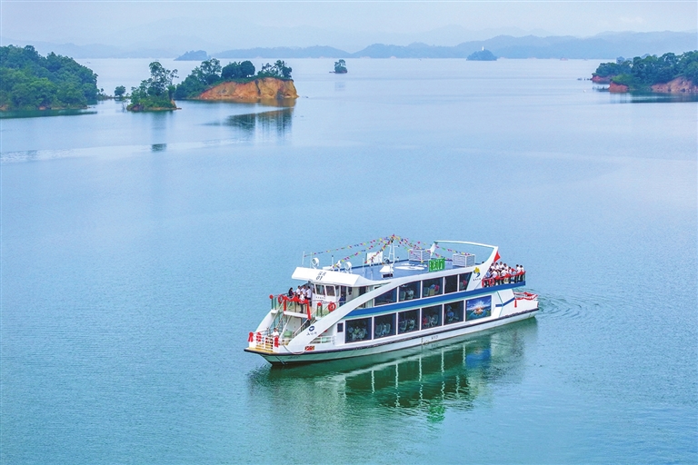 绿色交通加快推进。在万绿湖畔,4艘大型新能源电动游船实现“零排放”静音航行,守护一湖碧水。这艘船,是河源绿色交通发展的缩影。作为粤港澳大湾区重要水源地,河源在交通发展中始终将生态保护置于首位。新丰江水库139公里航道从六级跃升至三级,配套建设79座生态航标,实现了高等级航道“零的突破”。辖区泊位岸电全覆盖,老旧船舶加速淘汰,极力保护万绿湖这汪碧水。