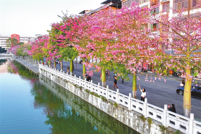 岁末,河源大地褪去秋华,换上五彩盛装。东源县上莞镇的红枫、连平县内莞镇的枫树、紫金县南岭镇680余年的古枫、河源国家高新区白鹭岛公园的落羽杉、东源县船塘镇的异木棉、源城区鳄湖公园的异木棉次第登场,像调色板一样勾勒出一幅幅生态与诗意交融的冬日画卷。