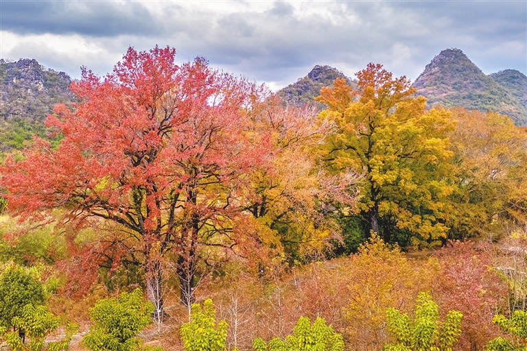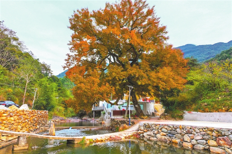 ■连平县内莞镇小洞村的古枫树群迎来红叶盛景
