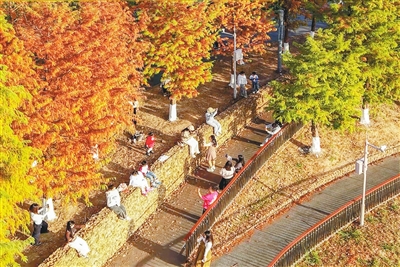 ■河源国家高新区白鹭岛公园的落羽杉红了
