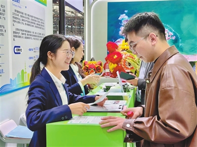 时装秀的魅力为河源展馆带来更多人气,求职者们来到馆内的“墩头蓝客家非遗文创区”,进一步欣赏各类墩头蓝文创产品。“这些文创产品融合了万绿湖的绿与墩头蓝的蓝,设计了服饰、摆件、饰品等各式产品。”借助此次人才盛会,河源技师学院艺术设计系教学副主任段凤娇在现场向求职者们介绍河源文化。