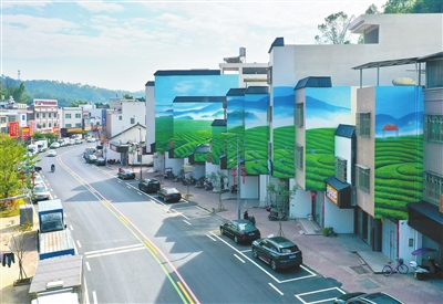 ■2024年年底,由11面墙体连成的巨型山水茶园墙绘点“靓”紫金县龙窝圩镇。画中云雾缭绕的茶园层层叠叠,成了“中国蝉茶之乡”最鲜活的名片。