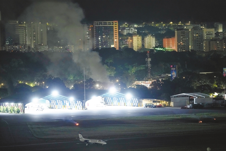 ■1月3日,委内瑞拉首都加拉加斯拉卡洛塔机场升起浓烟。 新华社 发