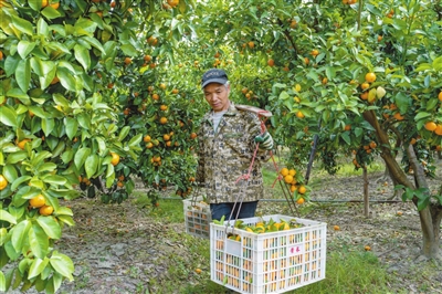 ■果农忙采收,一派繁忙的丰收图景。 李沛年 摄