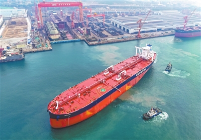 ■1月14日,由中国船舶集团青岛北海造船有限公司建造的31.9万吨氨预留超大型原油船“EBURONES”轮从青岛启航。据悉,该船是北海造船为比利时EURONAV公司建造的第二艘超大型原油船,实现了2026年生产“开门红”。新华社发