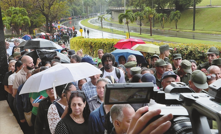 古巴数万民众风雨中追悼在委牺牲人员
