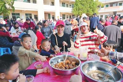 ■1月18日上午,阳明镇富联村举办杀年猪活动,按猪、杀猪、柴火炖汤、乡味市集轮番上演。活动吸引了1000多名群众参与,让人感受到了儿时“杀猪过年”的乡村年味。 本报记者叶春雨林科摄