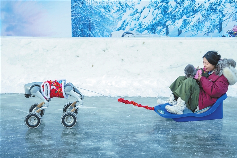 ■2026年1月5日,游客在哈尔滨冰雪嘉年华园区乘坐机器人拉爬犁。 近年来,在“冰天雪地也是金山银山”重要理念引领下,黑龙江以全新的资源观与发展观打开了冰雪经济发展新思路,将“冰雪”这一自然资源,转化为体育消费载体和文化创意资产,挖掘出巨大的品牌与文化价值。数据显示,2024—2025冰雪季,黑龙江省共接待国内外游客13508.3万人次,同比增长18.5%,游客花费同比增长30.7%。 新华社发