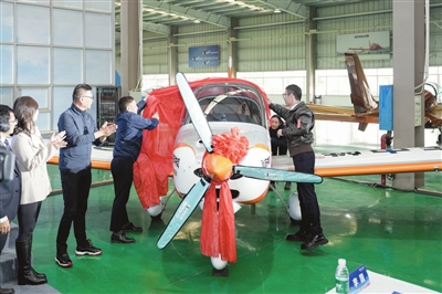 1月16日,在山河星航实业股份有限公司位于湖南省株洲市芦淞区的通航产业基地,我国第一架安装国产航电、引擎的轻型运动飞机AuroraSA60L(“阿若拉”)在取得适航许可后正式交付客户,这一关键核心技术突破,填补了国产航电、动力轻型运动飞机的空白,提高了我国在这一领域供应链自主可控的能力。 新华社发