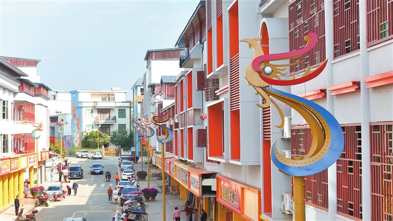■近日,记者走进凤安镇镇街,就被极具特色的凤凰造型景观吸引,沿途一栋栋房屋换上“新装”。