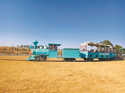 观花植物园的小火车很受欢迎。