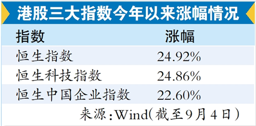 招商证券首席策略分析师张夏表示,截至目前的数据显示,港股中报盈利向好,业绩预喜率创三年来新高,“新经济”含量更高的港股盈利或先于A股持续改善。在本轮配置时,建议聚焦与A股存在差异化的方向,节奏上建议按先后顺序依次选择创新药、互联网以及新消费。