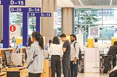 境外采购商在广交会登录大厅办理证件。 广州日报全媒体记者吴子良 摄