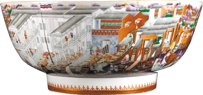 清乾隆广彩十三行通景图大碗