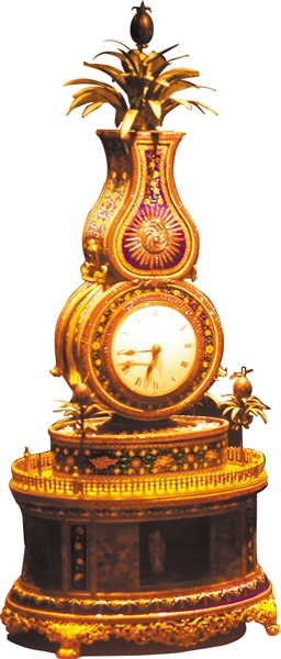 清乾隆铜镀金自开门三星报喜葫芦式钟