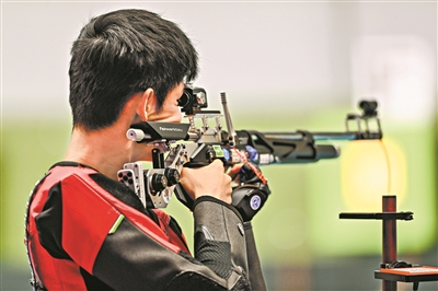 第十五届全运会射击男子10米气步枪决赛在广州举行,江苏队选手盛李豪最终获得冠军。