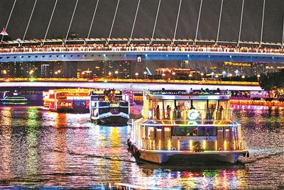 开幕式现场,市港务局组织了10艘主题花船巡游,充分展现广州游船产品的多元化发展成果。船上游客尽览两岸灯火与城市风光,岸上市民驻足观赏花船的精巧造型,形成了一道“船上看景、岸上看船”的城市夜间亮眼风景线。“古风广府”尽显岭南底蕴,“现代演艺”展现都市活力,“活力运动”呼应全运赛事,这些融合广府文化、现代演艺和运动主题的“移动文化展厅”,既是对传统文化的创新传承,也是对都市生活的时尚诠释,充分体现了广州在推动文商旅体融合方面的成功探索,为城市夜间经济发展注入了新动力。