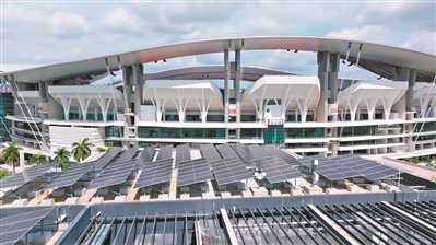 广东奥体中心及周边的建筑均安装了光伏板,为赛事提供绿色电力供应。