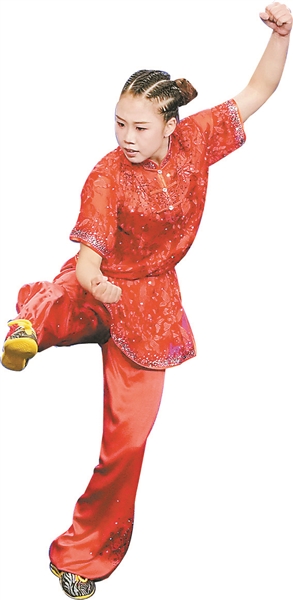 运动员在十五运会武术套路(女子长拳)比赛中。