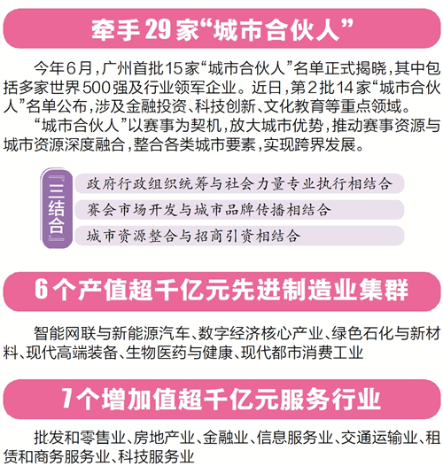 截至10月底,广州已与29家企业及机构结为“城市合伙人”,共同为擦亮广州“一城二都三中心”六张城市名片注入强劲发展动力。