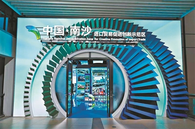 南沙进口贸易促进创新示范区以315平方米的开放式展厅亮相第八届进博会。