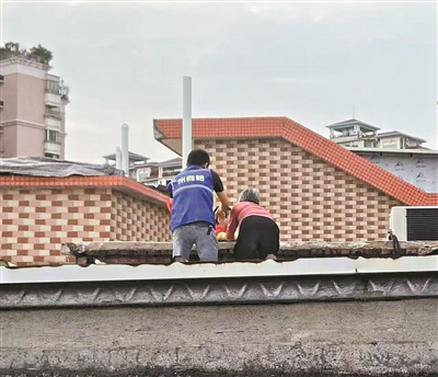 黄玮爬上楼顶救助祖孙二人。